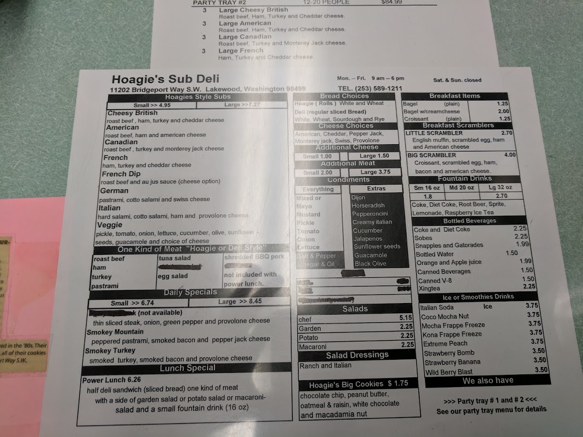 Hoagie's Sub Deli Menu